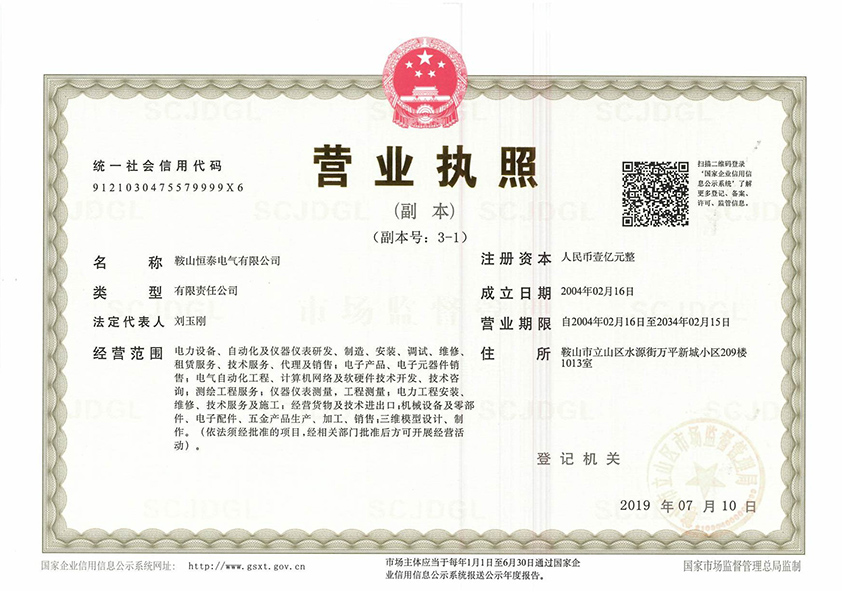 版權(quán)所有 鞍山恒泰電氣有限公司 企業(yè)營(yíng)業(yè)執(zhí)照 遼ICP備20000862號(hào)-1